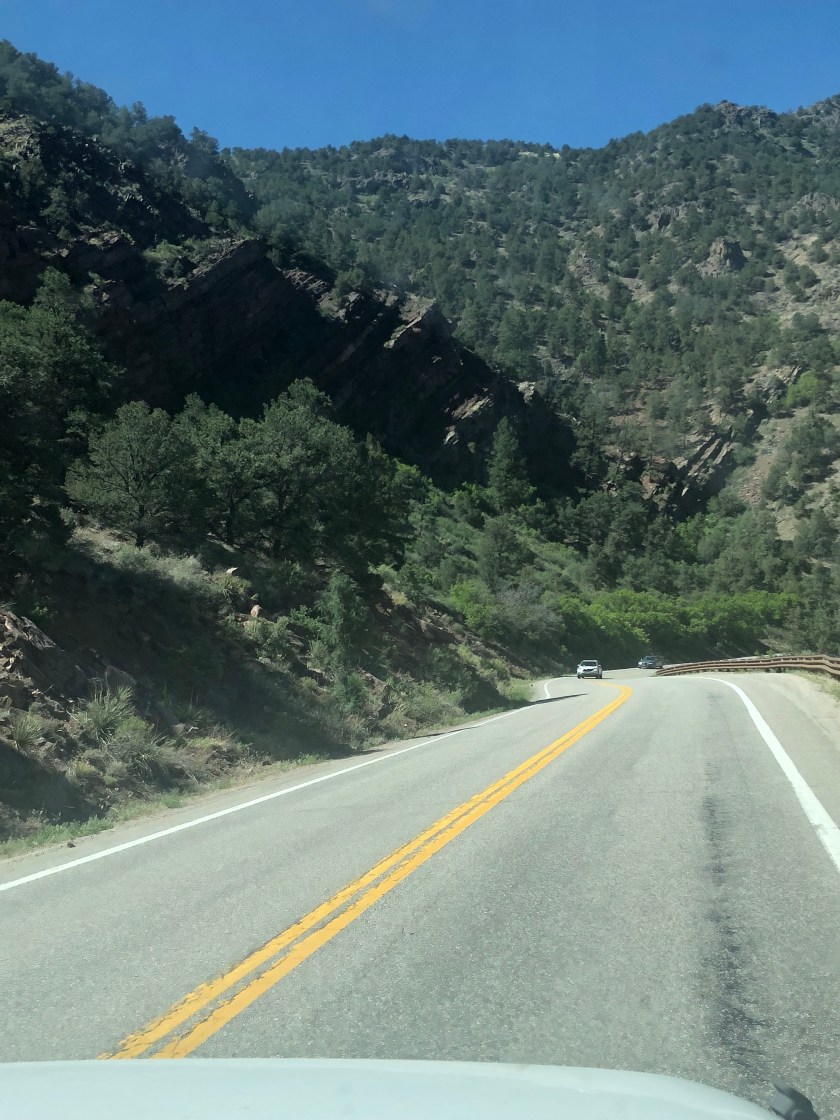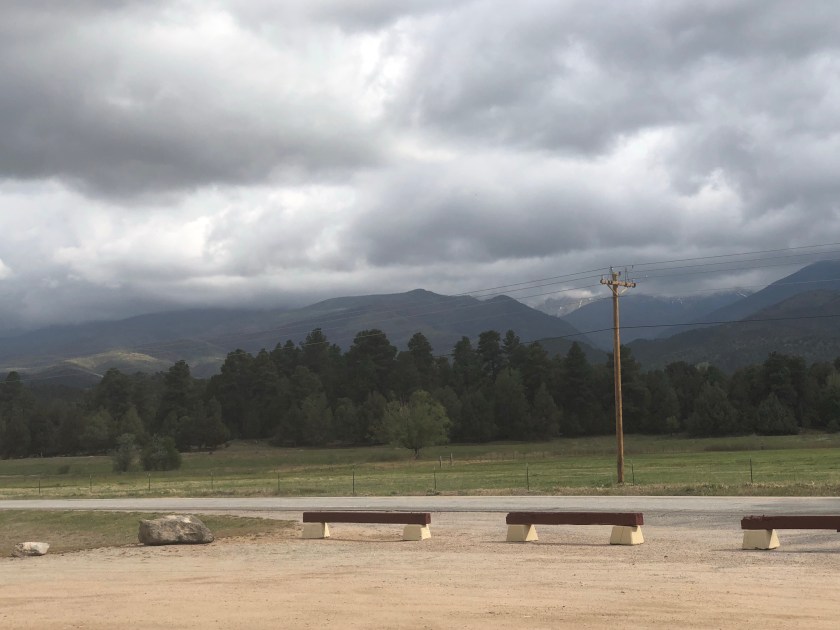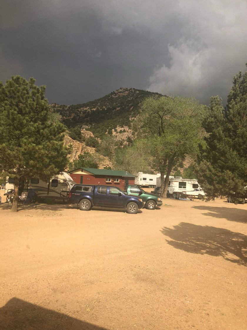 Today was a lazy day for us.   We took a trip into Salida and I FINALLY found a Nail Shop. Whew!!!! It was relaxing and she did a great job.  We found a store that has everything. Murdoch’s Ranch and Home Supply. If you ever pass by one, I suggest going in and giving it a shot. They carry everything. We then had lunch at the Lost Cajun restaurant.  Veggie Gumbo and Fried Okra, and it was yummy! The restaurant was clean and the people were friendly.  I would give it a 5 star review online.  I took some pictures on the drive back to the campground which is about 30 miles out of town.  I took a little nap just to rest my eyes (about 2 hours) and we washed some clothes this afternoon. I’m including a picture of our washer/dryer combo.  We were just sitting here talking and all of the sudden water in the sink started bubbling.  We have washed three loads and Jeff ran outside to dump the water so we weren’t wading in it.  Too funny.  We have a cloud on the other side of the mountain now, but we think it’s going the other way.  It’s hard to tell.  A hike is in our near future this afternoon, just making sure the the storm isn’t headed our way.  I’m hoping the video from the ride back will upload.  We had two motorcycles in front of us and Dale Jr., AKA “Jeff” was doing a fine job getting back to the RV.  I’ll have to add it later when I have WiFi. It won’t upload now.