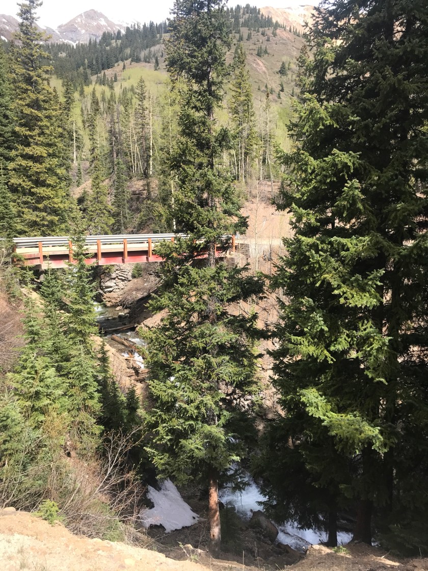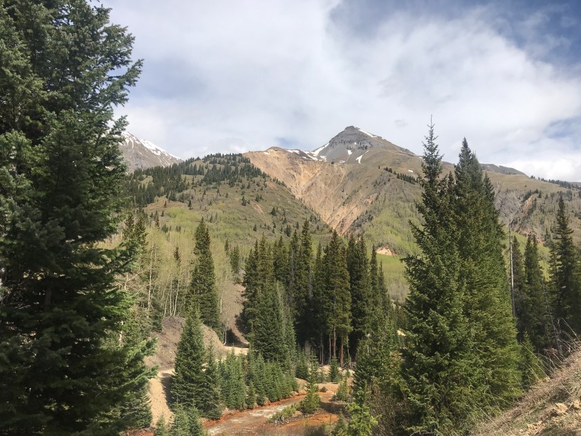 Kim was getting concerned about the trails being washed out and how deep the creeks were that we had to cross. Then it started snowing again but she was ok because we had food and water this time. We started back down the mountain, Kim wouldn’t let me keep going up. She said we were over 11,000 feet and she couldn’t breathe. The curves in the road and going up and down wore her out. She said she needed a nap to recoup.