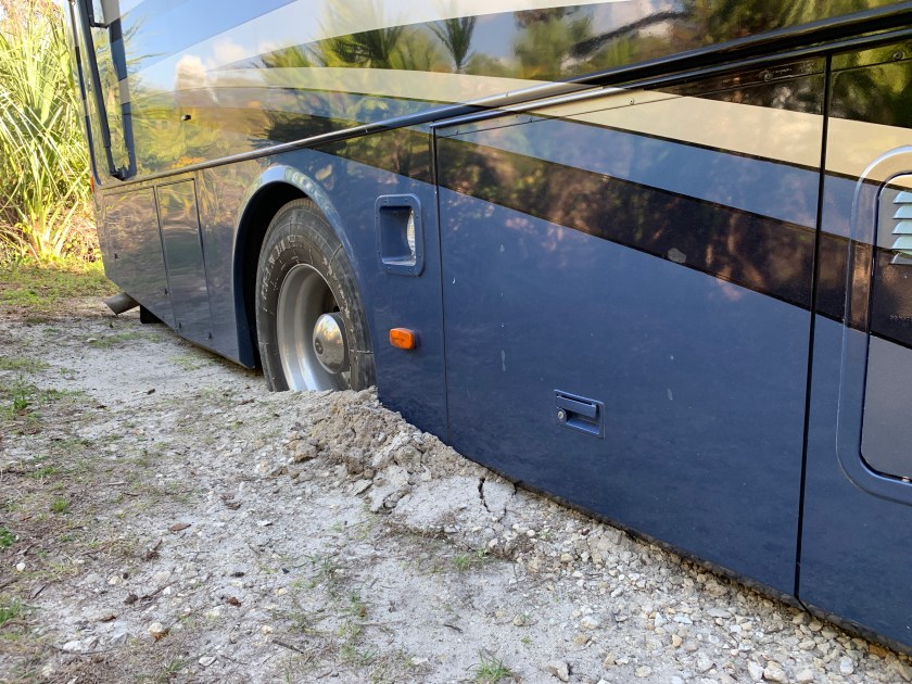 **Interesting tidbit. In Koreshan State Park, as we backed into our RV spot the rear tires of the RV just sank to the frame. I honestly thought the muffler was going to go under. We called a tow truck and Jeff didn’t feel so bad when they told him that they have to tow people all of the time out of that rv park because it’s so soft. That particular tow driver had just been there the day before. Poor Jeff…I think he was feeling bad. I know I was feeling bad because I was giving him the direction to come back. Hey, that’s what Coachnet (RV Roadside Assistance) is for. But, all in all it’s been an excellent trip! Much more fun in store the next two weeks!