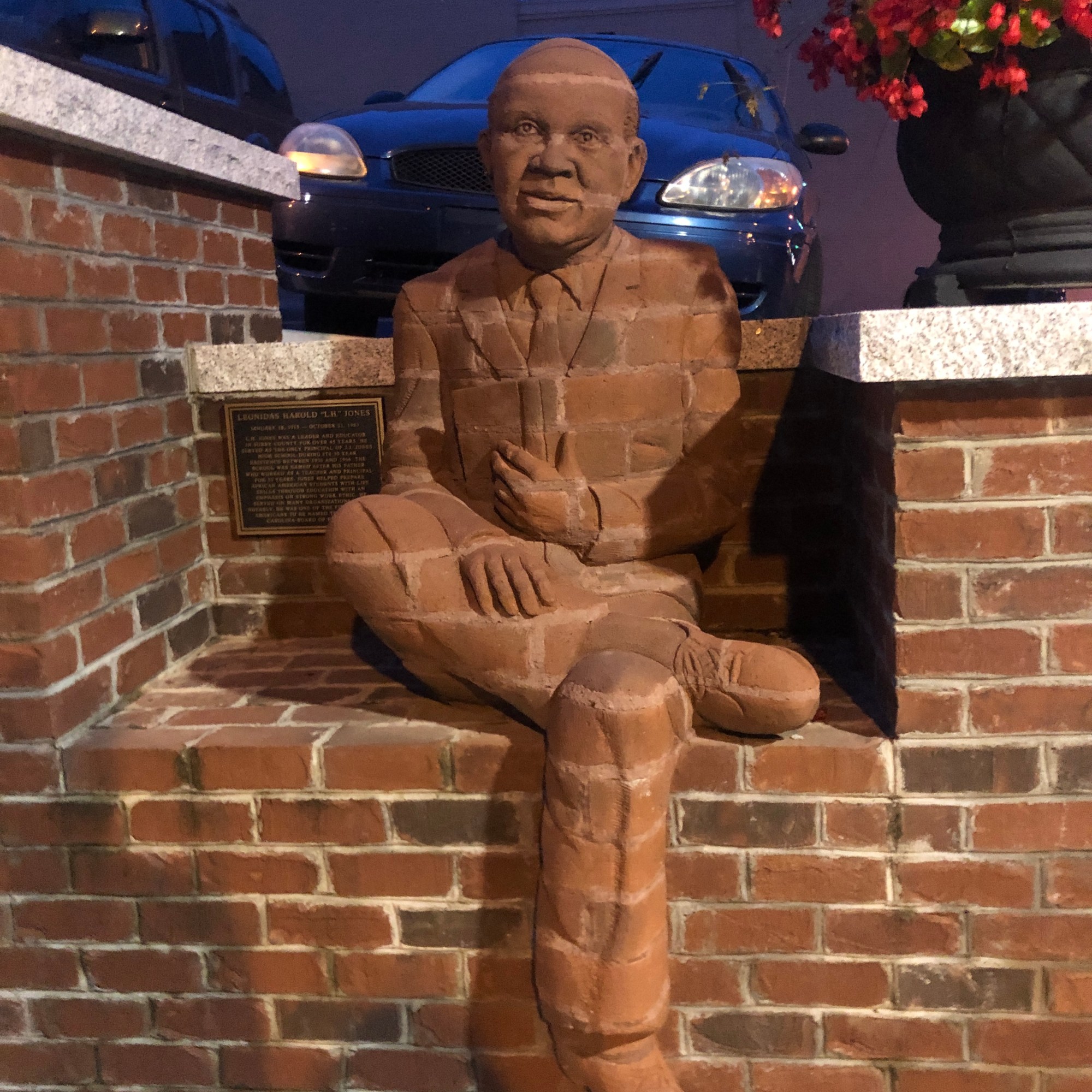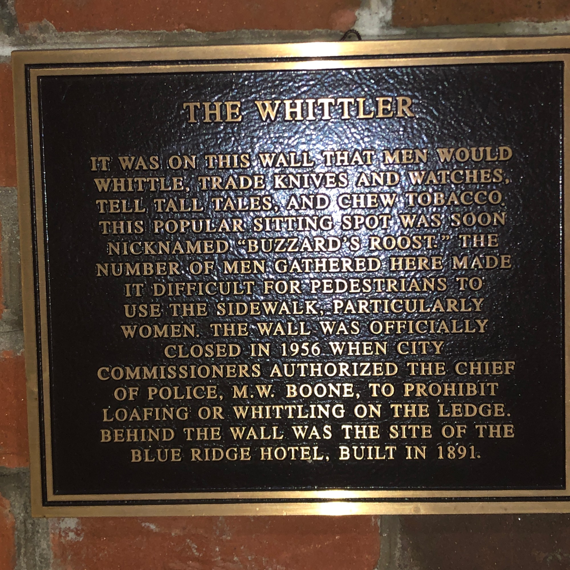 The Whittling Wall contains 8 brick sculptures of notable local individuals. These statutes were $93,340 downtown revitalization grant