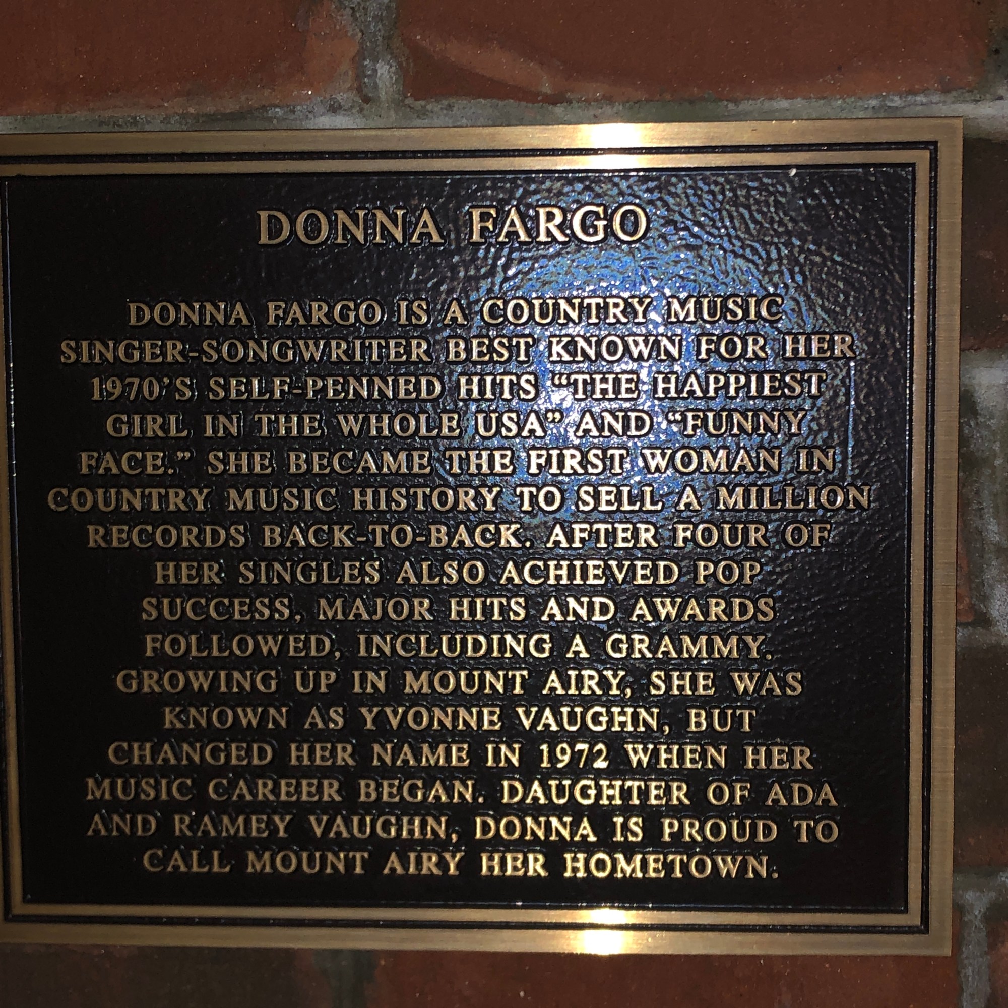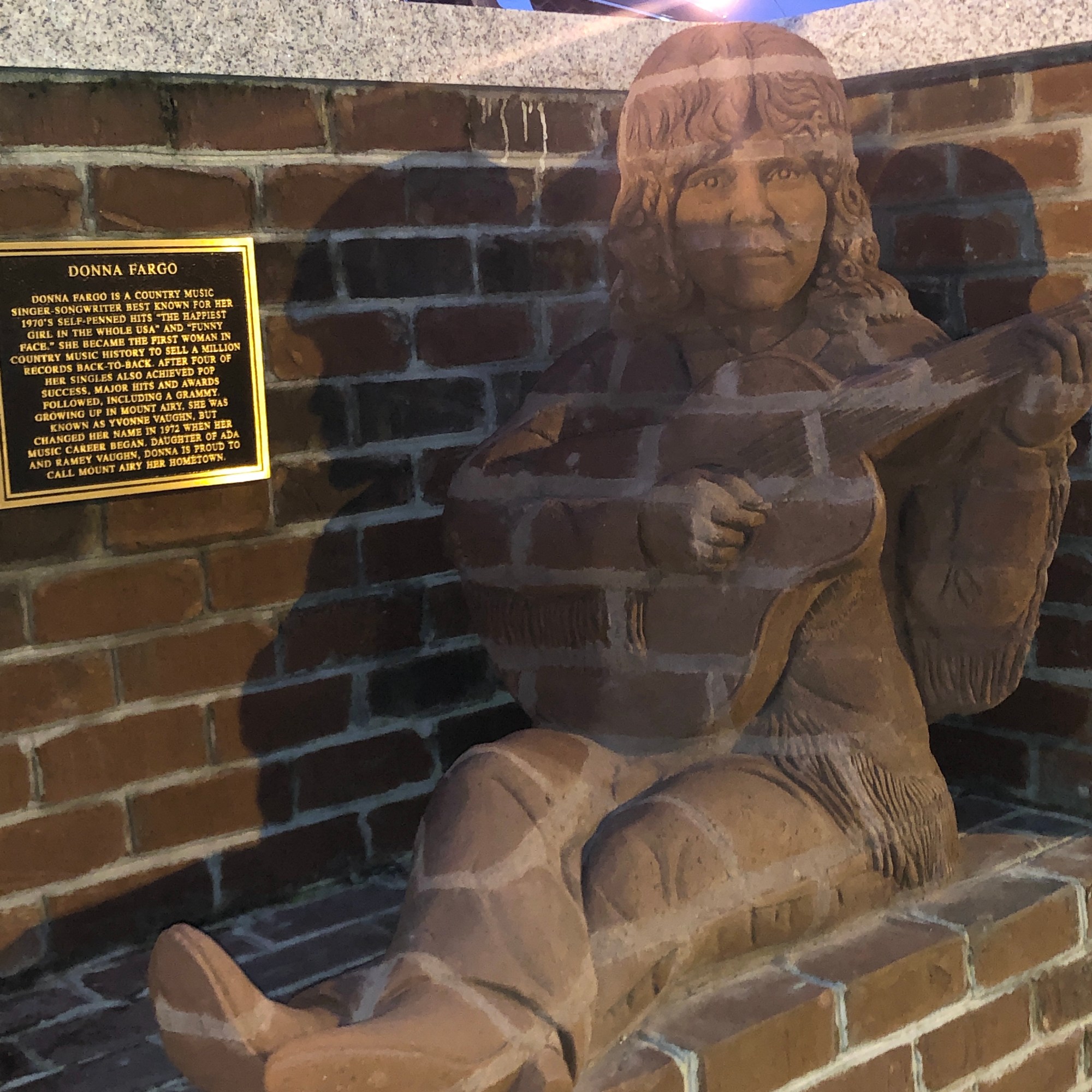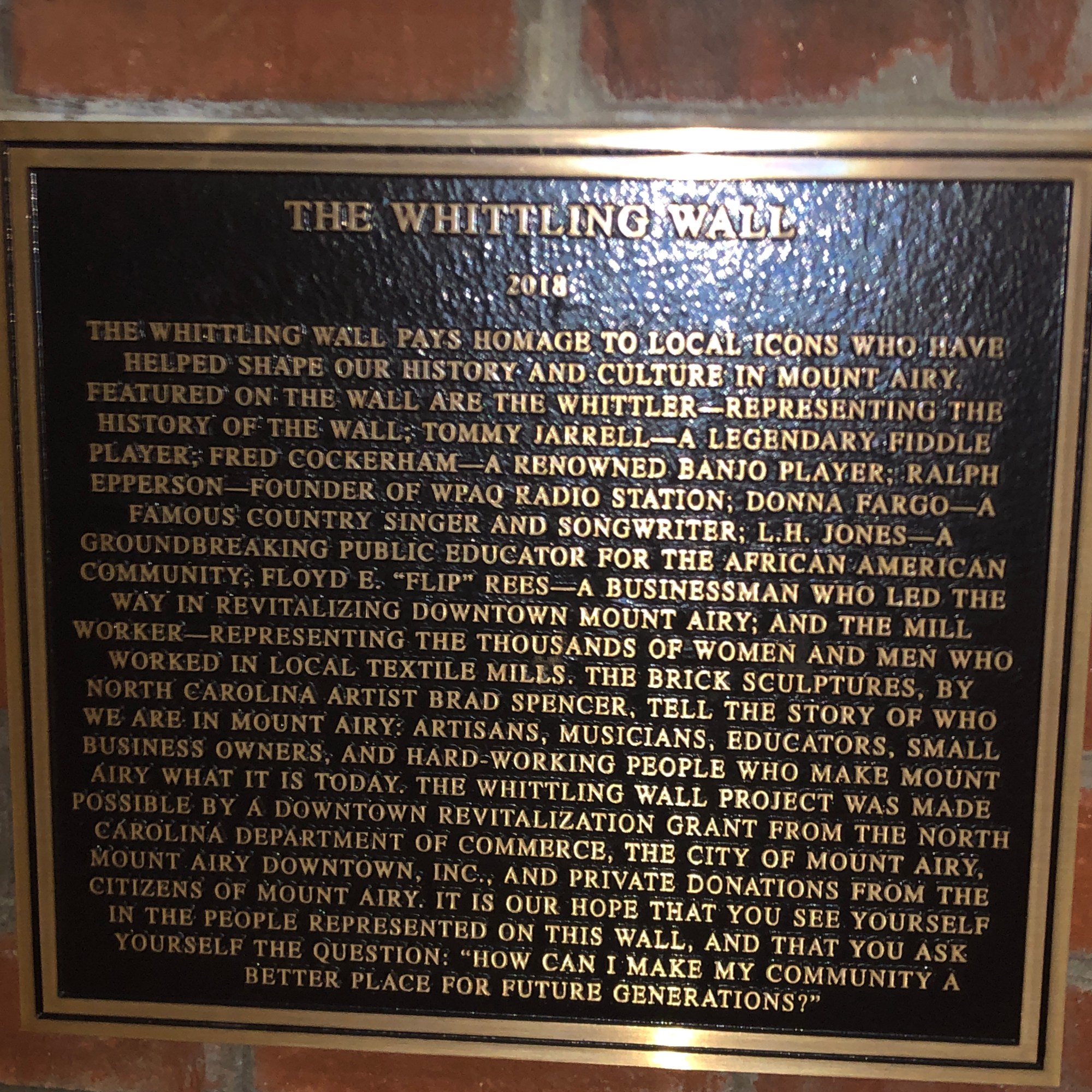 Last night in downtown Mount Airy we found “The Whittling Wall”. Donna Fargo the country music singer is from Mount Airy, NC. We found out during the squad car tour. But, she was featured on this amazing Whittling Wall.