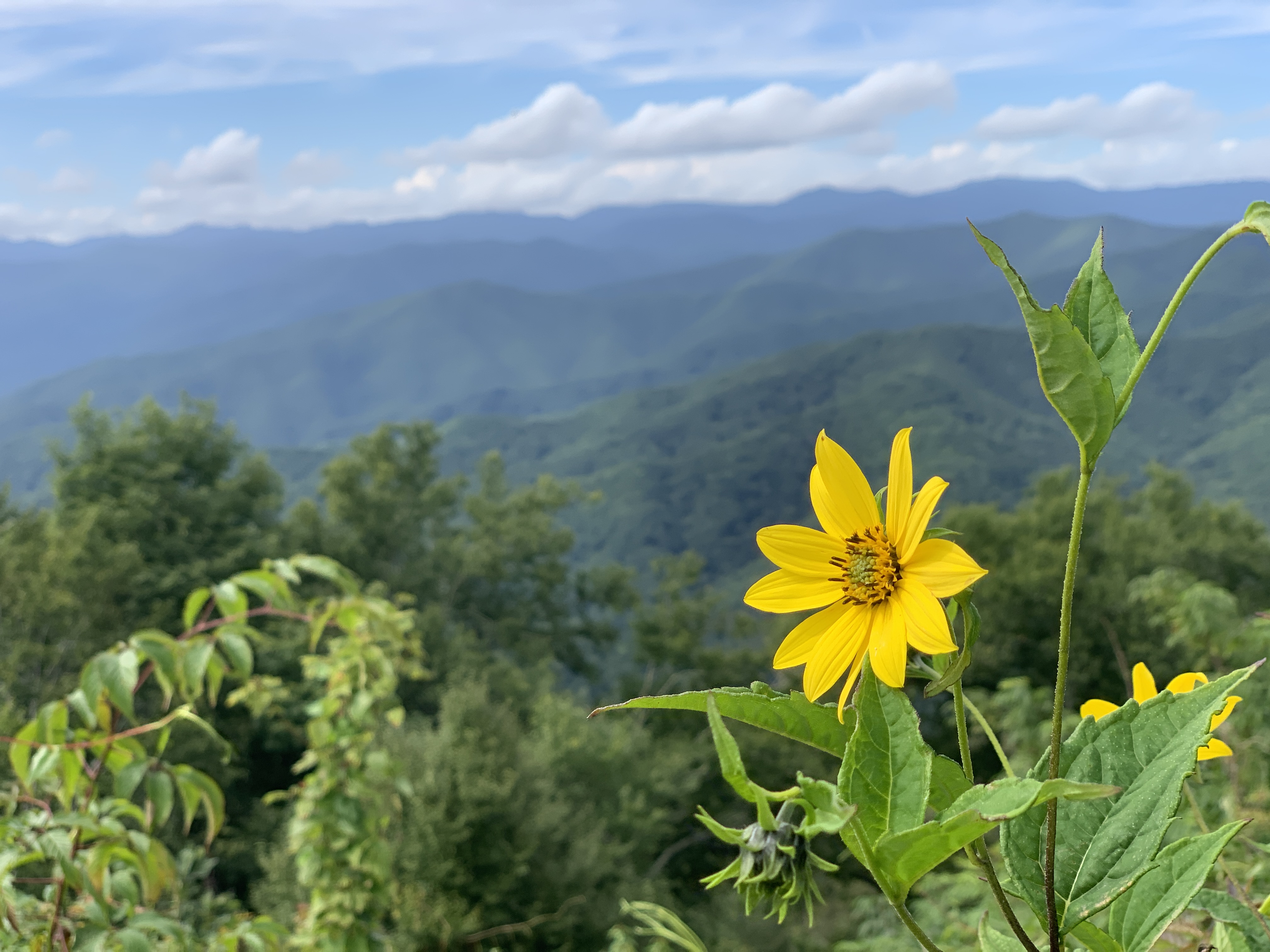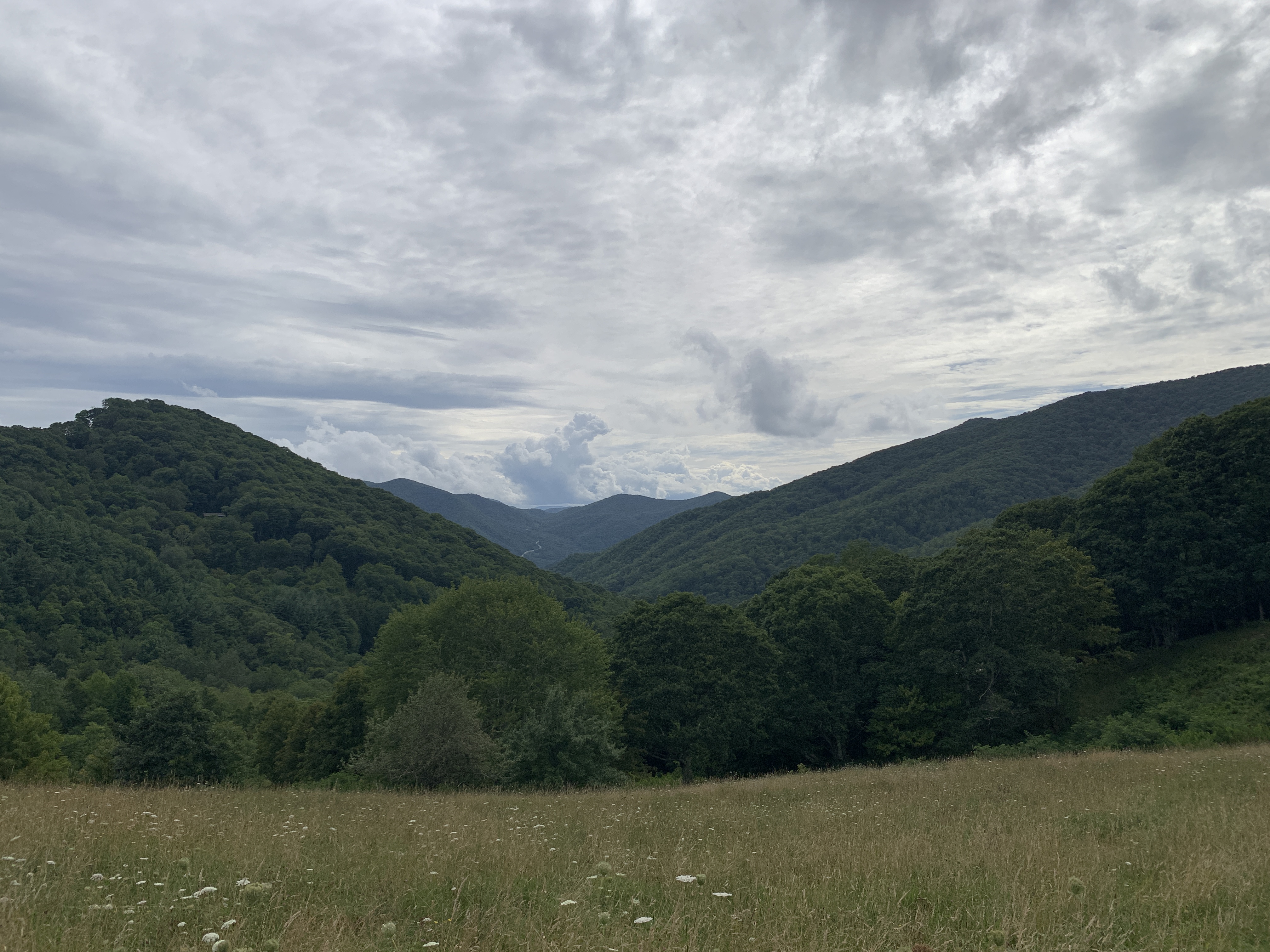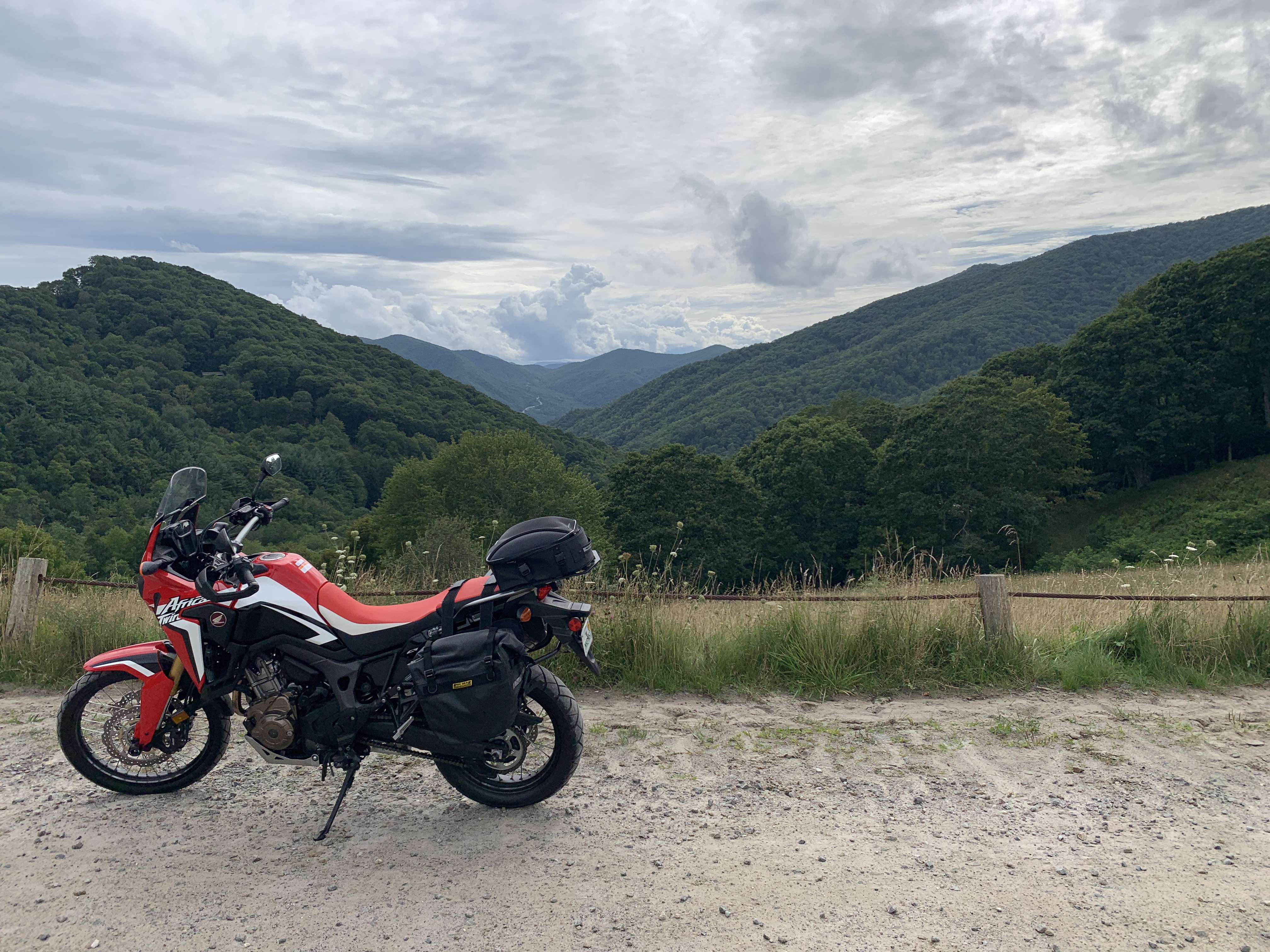 After we took a day trip to Asheville, Jeff took a ride up the Blue Ridge Parkway on the bike. Tonight we took a 4 mile walk and saw these beautiful strawberry hydrangeas. We also included some pictures from Scooter’s photo shoot on the walk. There’s a beautiful creek that runs right beside the sidewalk on Moody Farm Road. Our campground is on Moody Farm Road and I have shared two pictures at the bottom.