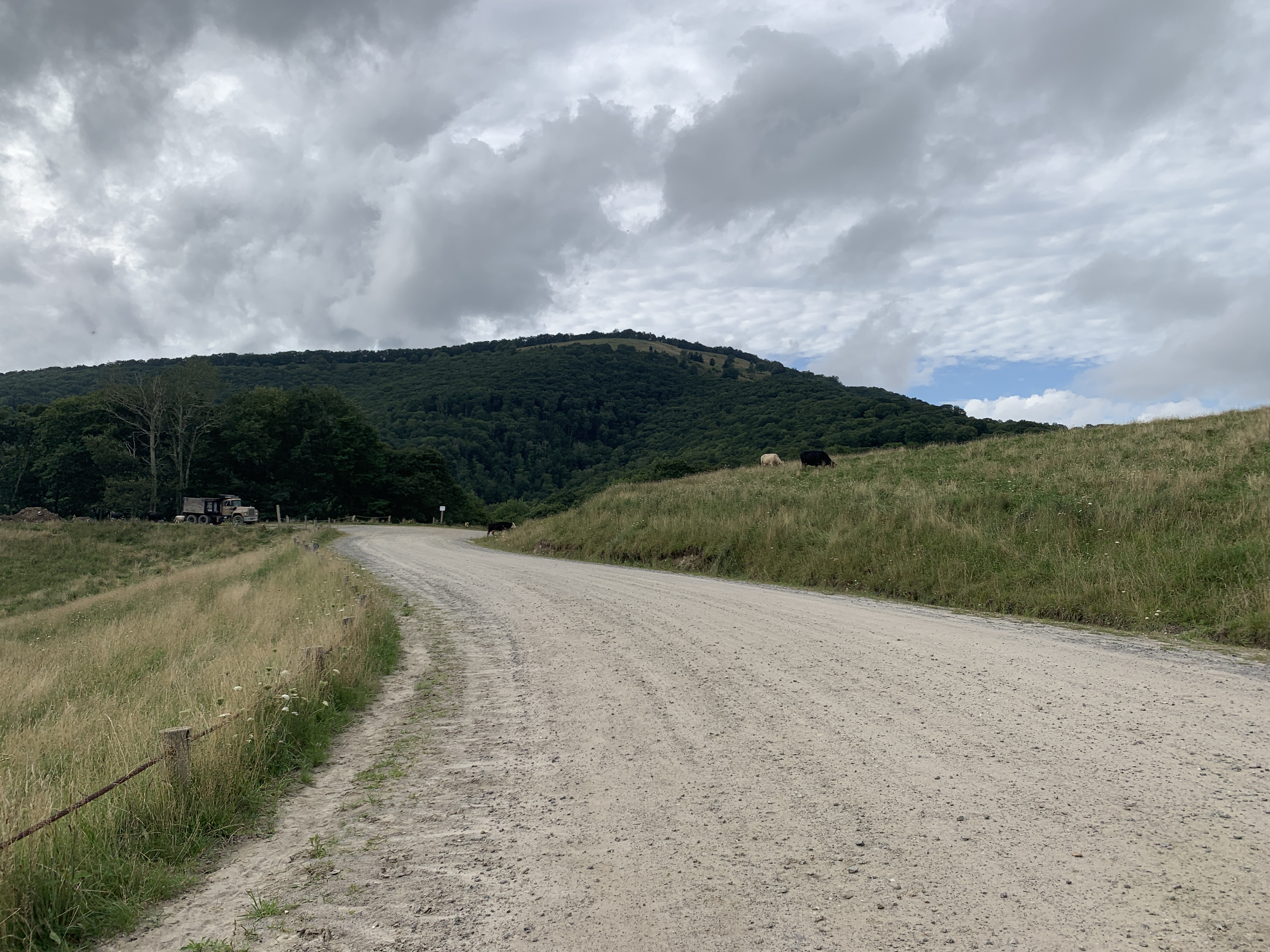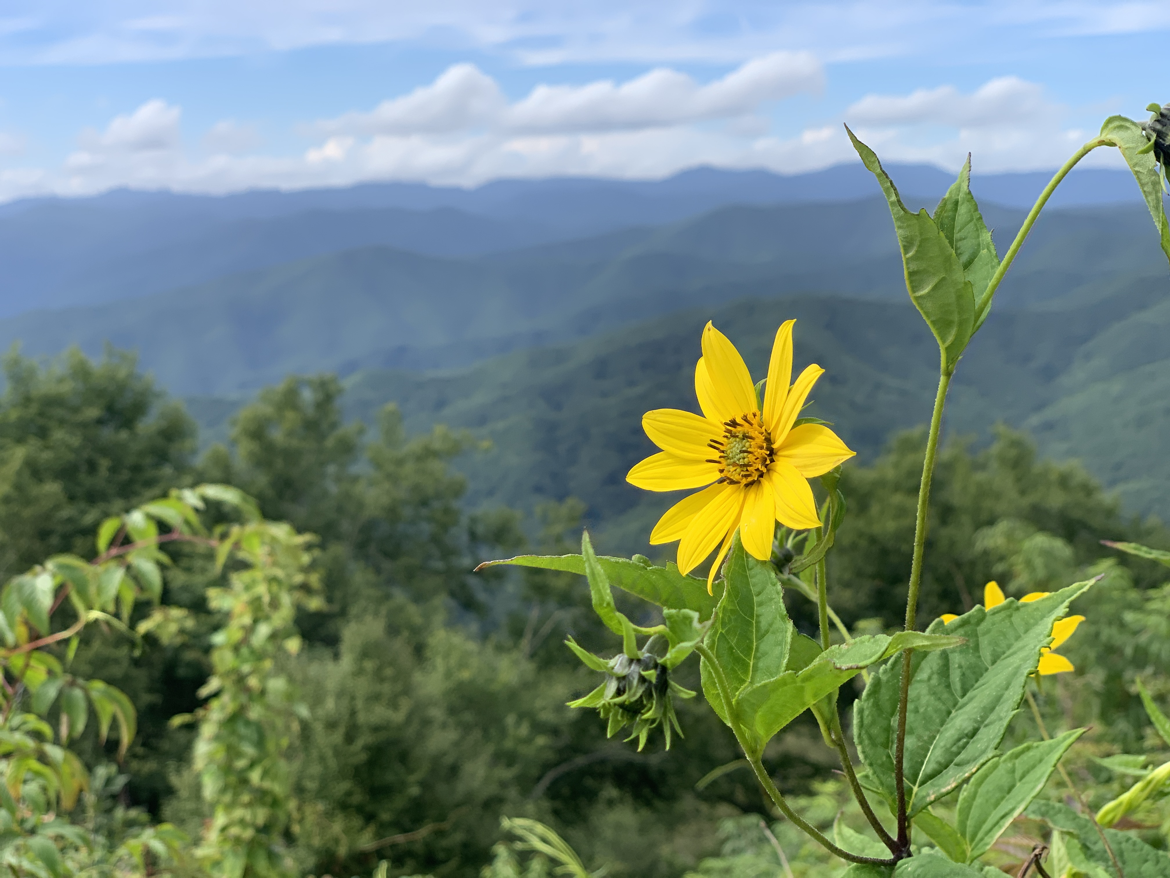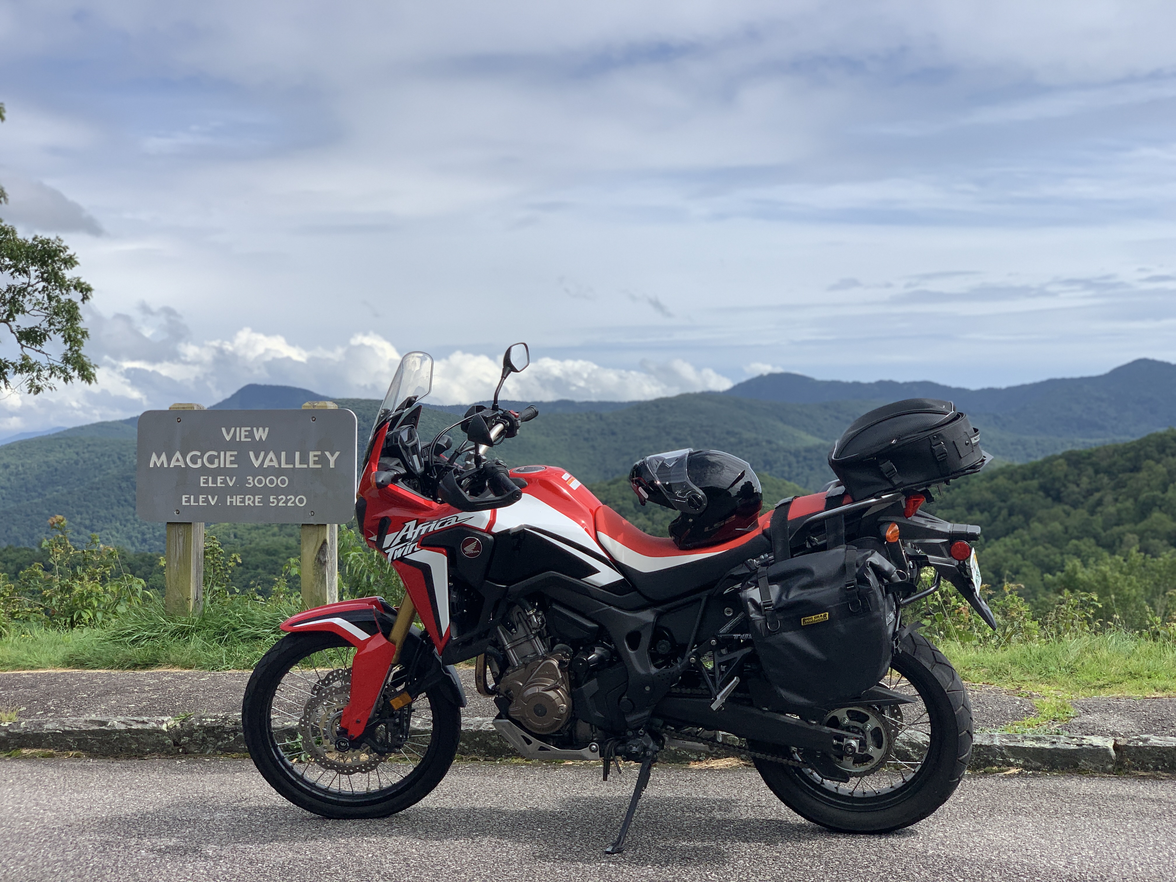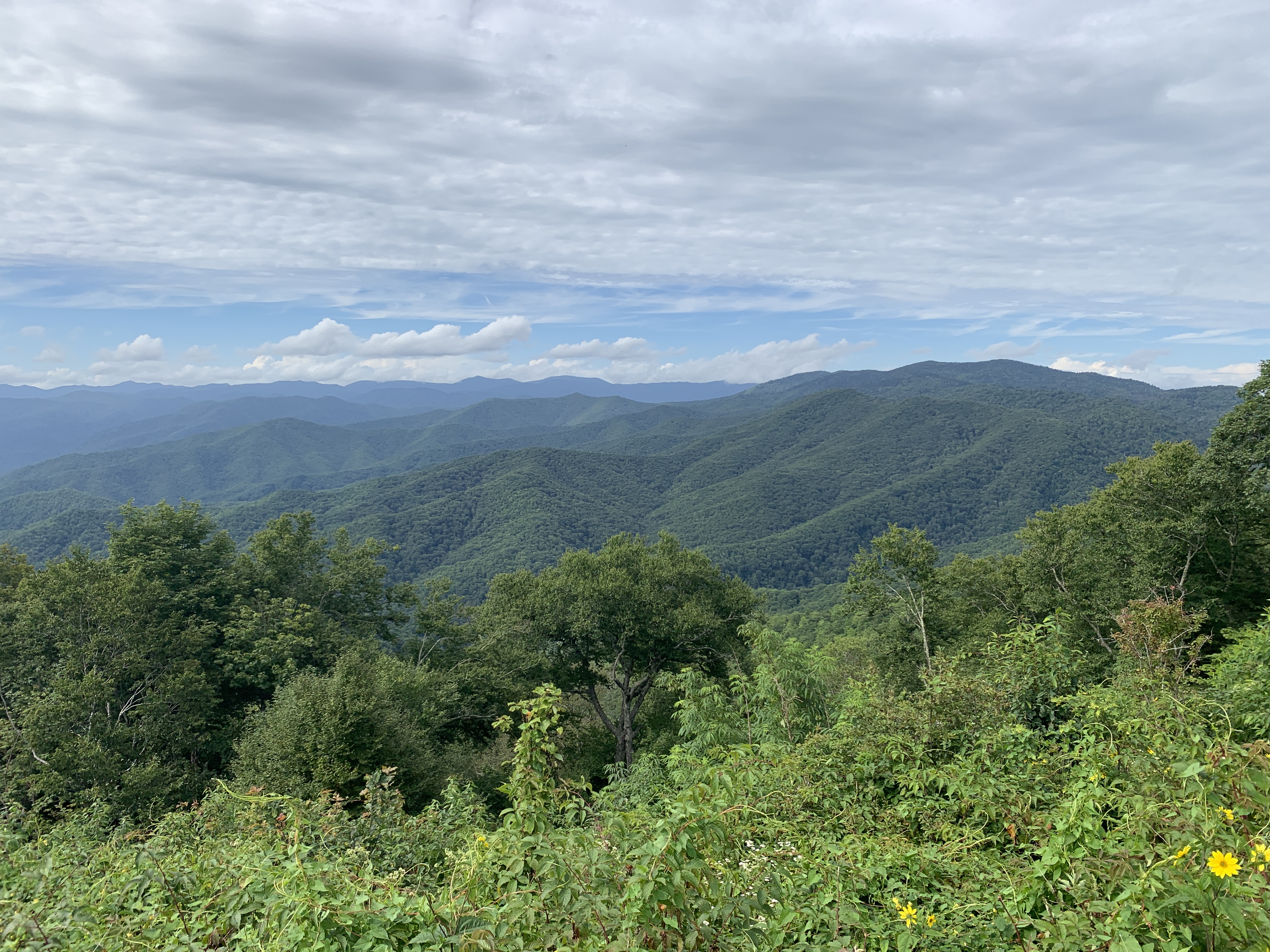 After we took a day trip to Asheville, Jeff took a ride up the Blue Ridge Parkway on the bike. Tonight we took a 4 mile walk and saw these beautiful strawberry hydrangeas. We also included some pictures from Scooter’s photo shoot on the walk. There’s a beautiful creek that runs right beside the sidewalk on Moody Farm Road. Our campground is on Moody Farm Road and I have shared two pictures at the bottom.