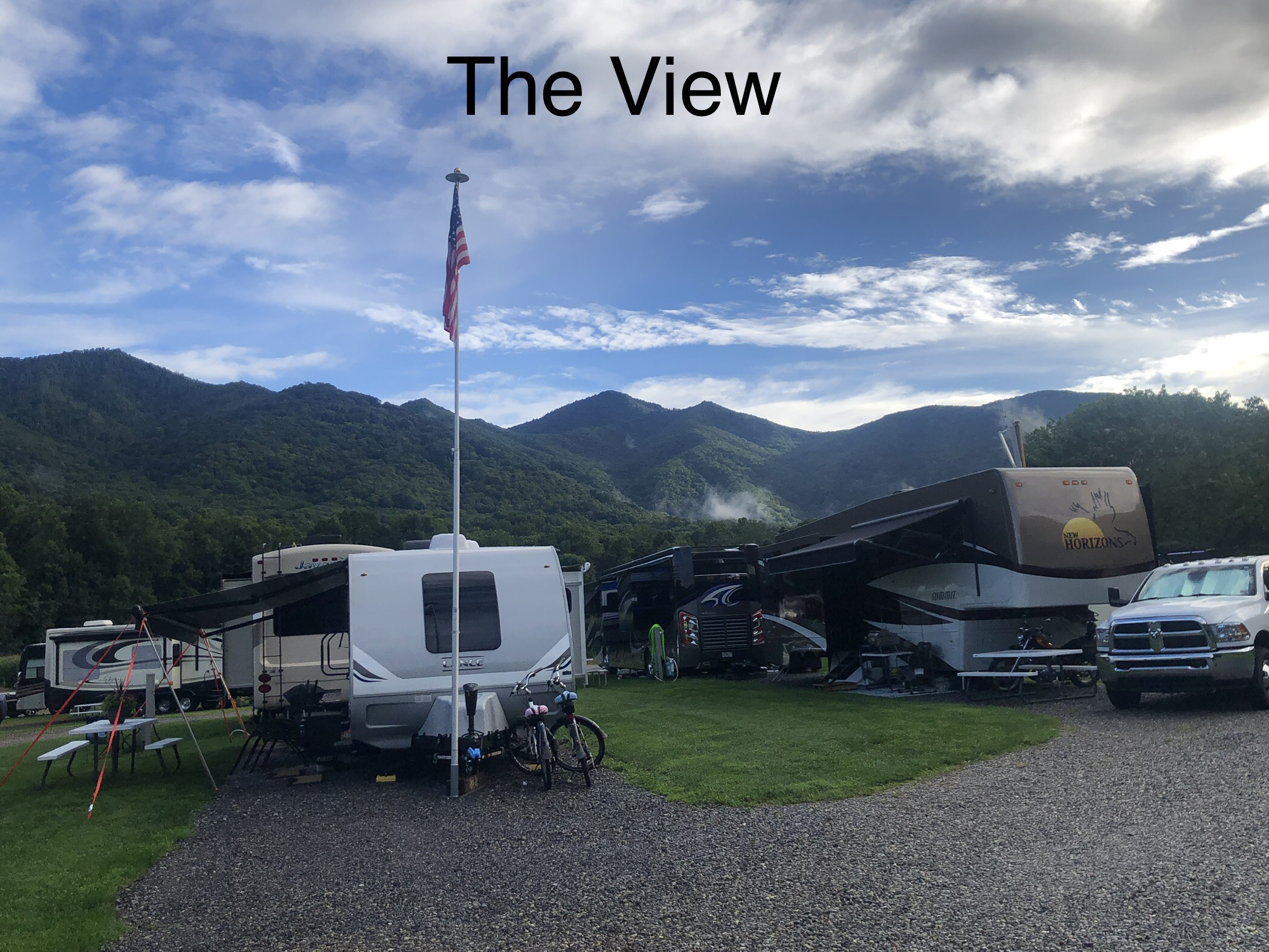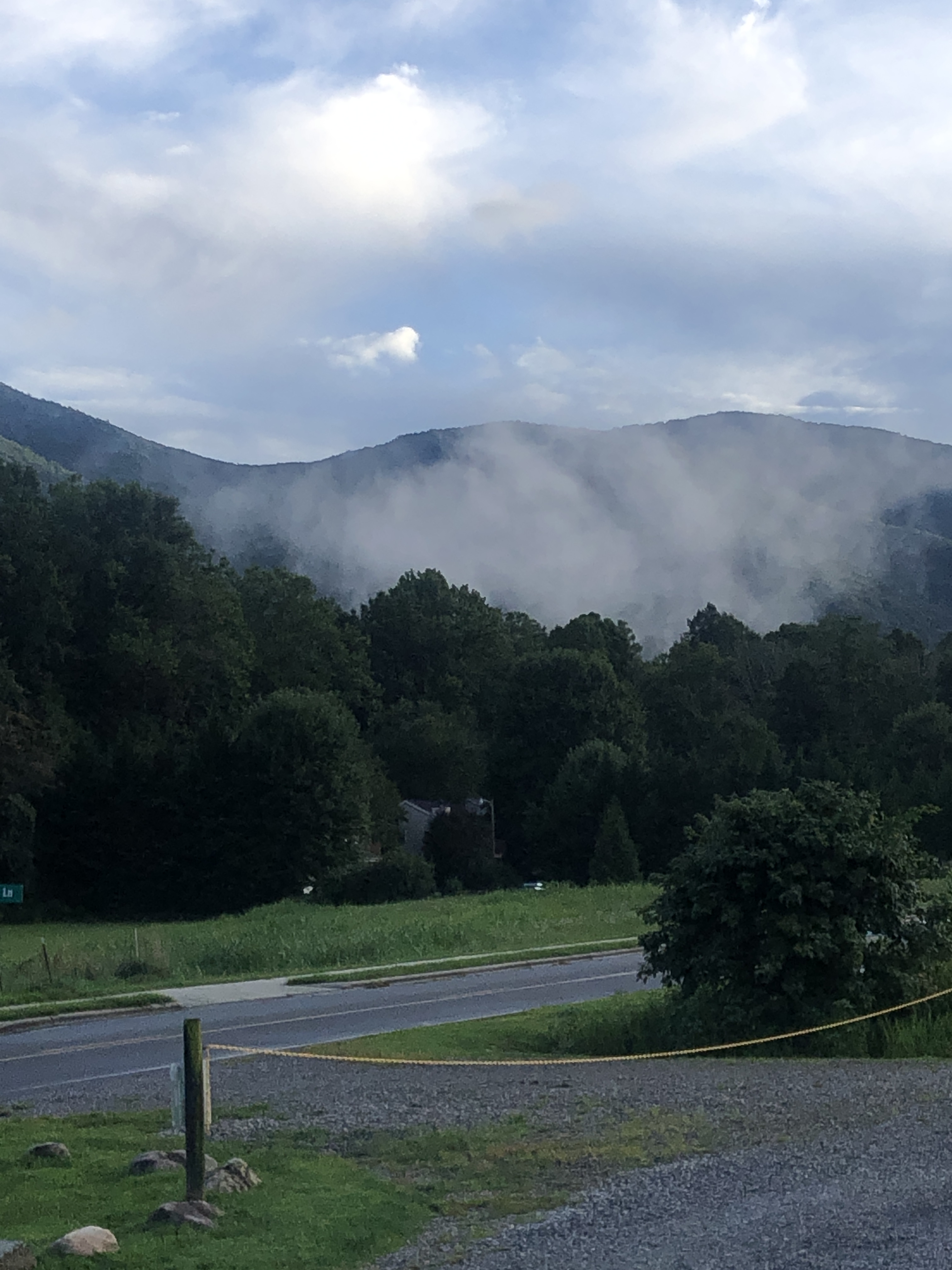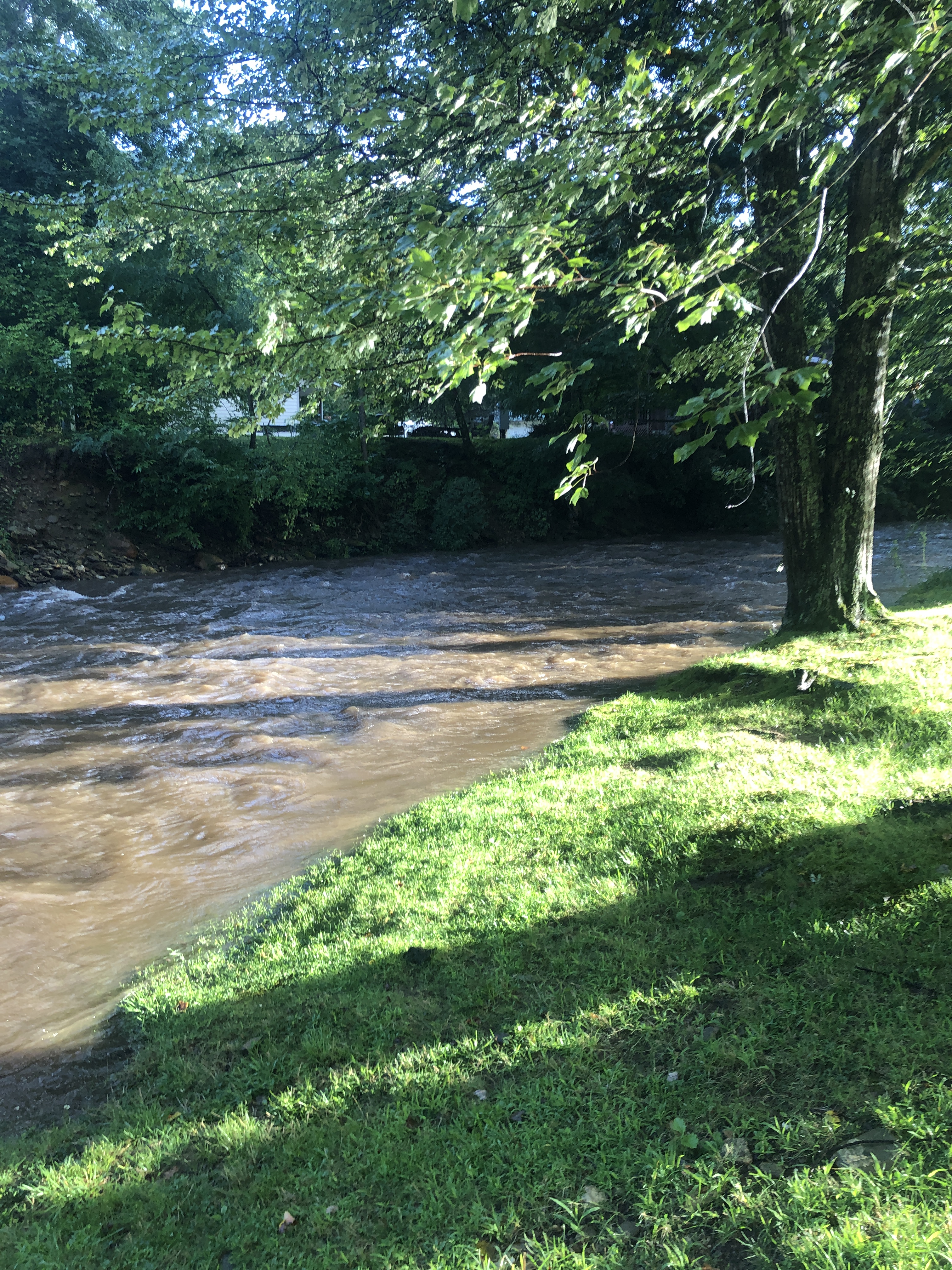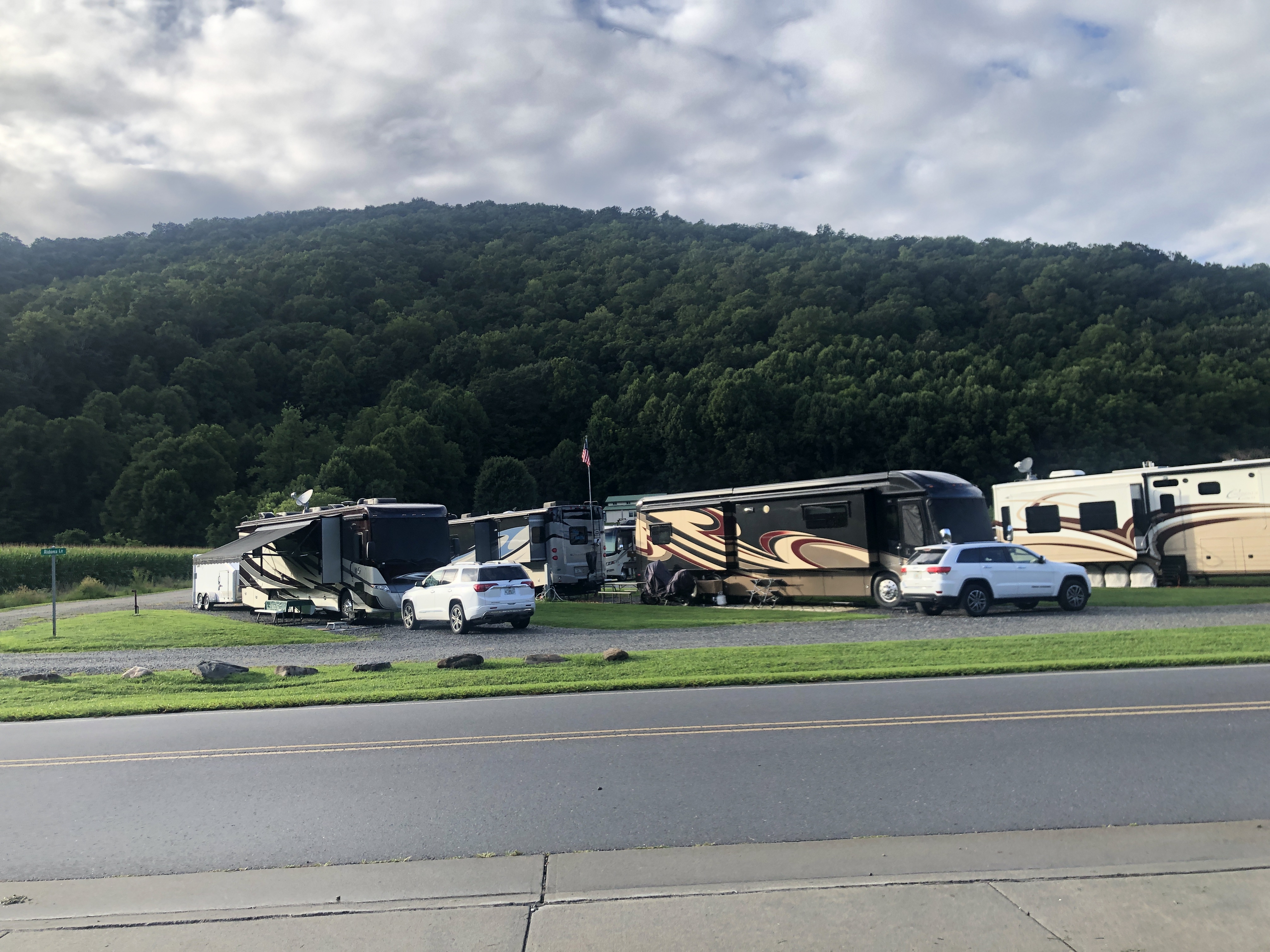 A walk around Cross Creek RV Park. We are in a beautiful valley here and Jonathan Creek also runs right beside the RV park. There’s a creek across the street. The pictures below show it right after a massive rain, however it’s usually clear and Scooter loves to run around in it.